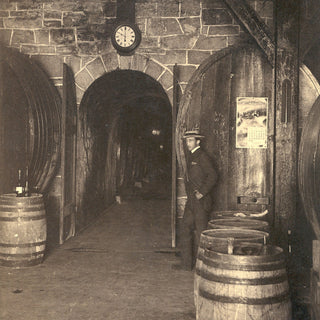 This became the very first gravity-flow winery in Napa Valley—a groundbreaking concept at the time. A graded road behind the structure allowed horse-drawn wagons to deliver grapes directly to a crusher on the flat rooftop, with the juice flowing naturally downward into the fermentation tanks below. Long before electricity, this European method—common in the Brothers’ native Rhine Valley—was virtually unknown in America and proved remarkably efficient.